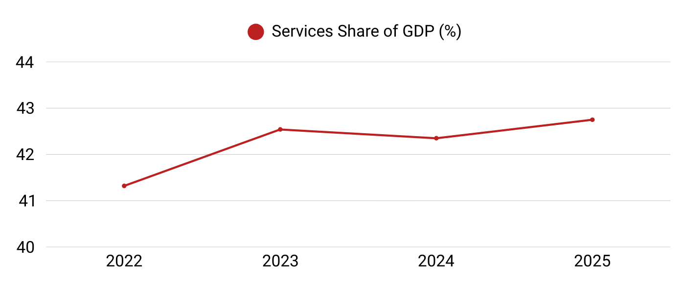 The share of services in the national GDP has now stabilized above the 42% mark, proving that this sector is a permanent pillar of stability.